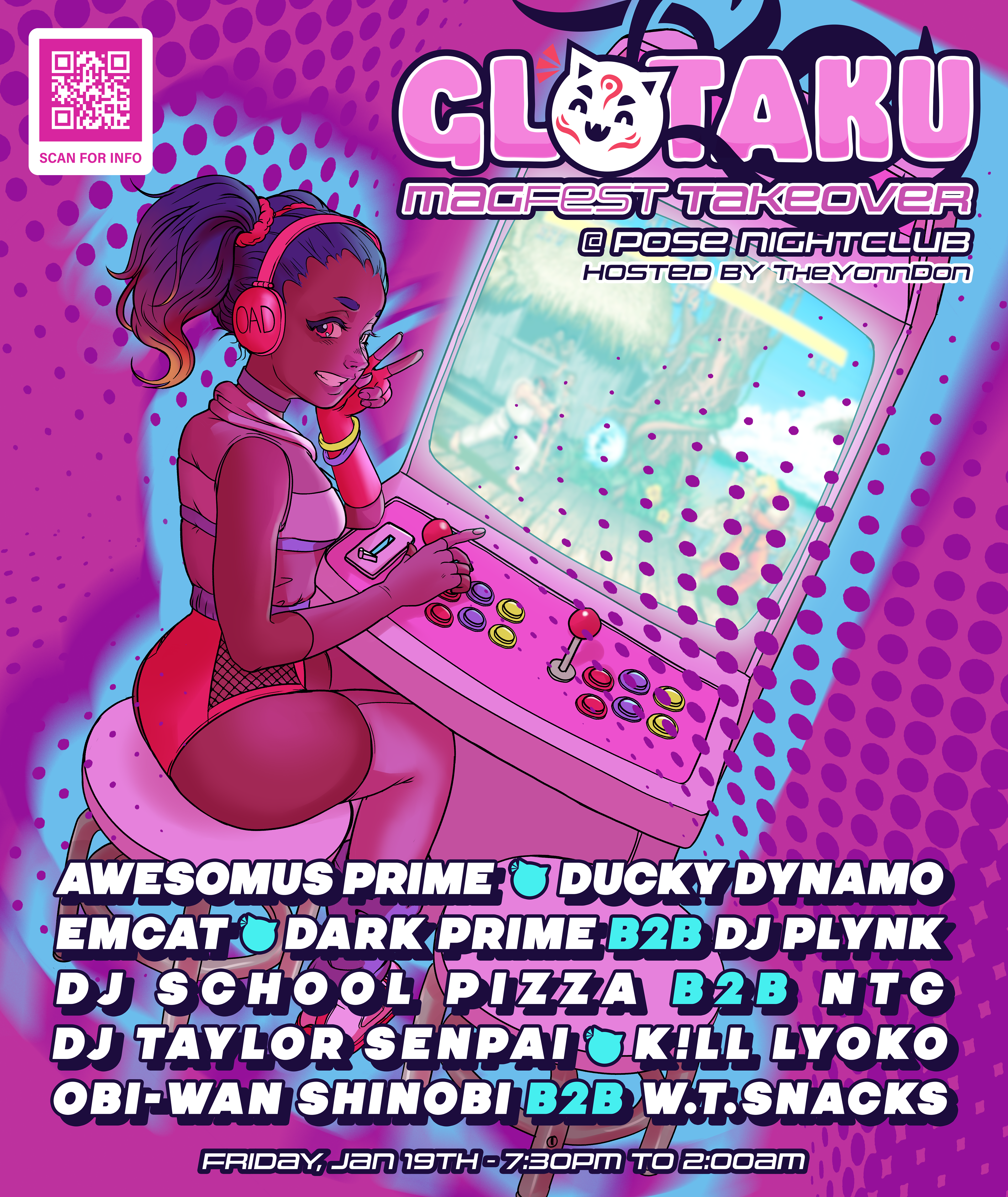 Promotional client work created for Glotaku, a local organization throwing regular anime themed cosplay raves with a focus on themed shows And events that rotate seasonally